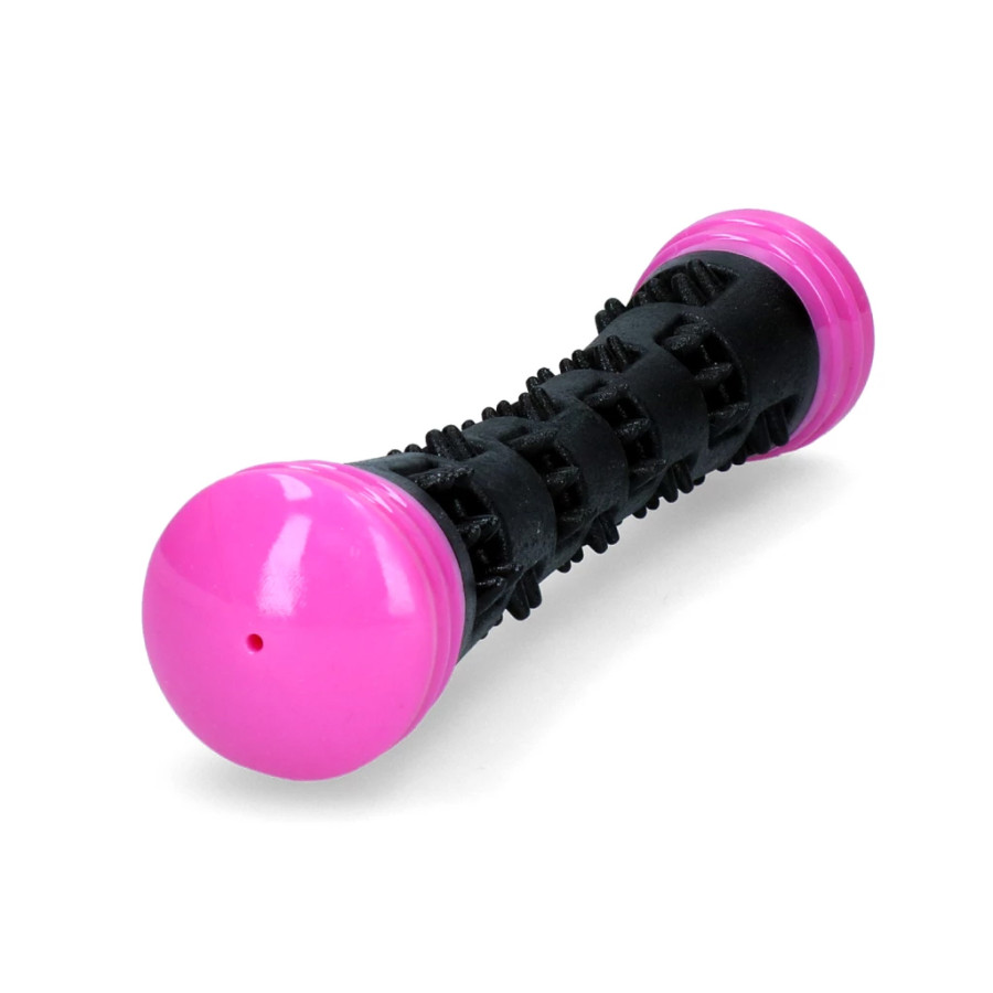 Aportovacia tyčkaTáto tyčka je vyrobená z odolnej gumy a perfektne sa odráža. Materiál tyčky masíruje ďasná a podporuje zdravie zubov. S pískadlom pre ešte viac zábavy pri hre.