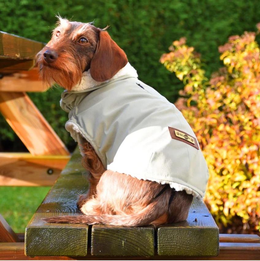 Nepremokavá bunda pre psa s golierom, vnútorne podšitá mäkkou sherpa podšívkou, vďaka ktorej sa skvele hodí aj do tých najchladnejších dní. Produkt je dostupný v dvoch pastelových farbách: zelenej a ružovej.