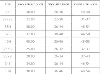 Výrobok je ideálny pre psov všetkých veľkostí vďaka veľkému množstvu dostupných veľkostí: XXS 22 cm, XS 25 cm, XS 28 cm, S 30 cm, S 32 cm, S 34 cm, M 36 cm, M 38 cm, M 40 cm.