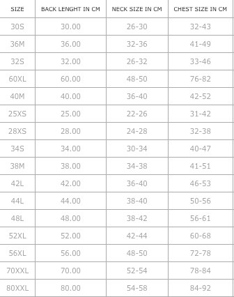 Zloženie: 100% polyester Veľkosti: 25XS až 80XXL Zips na prevlečenie vôdzky
