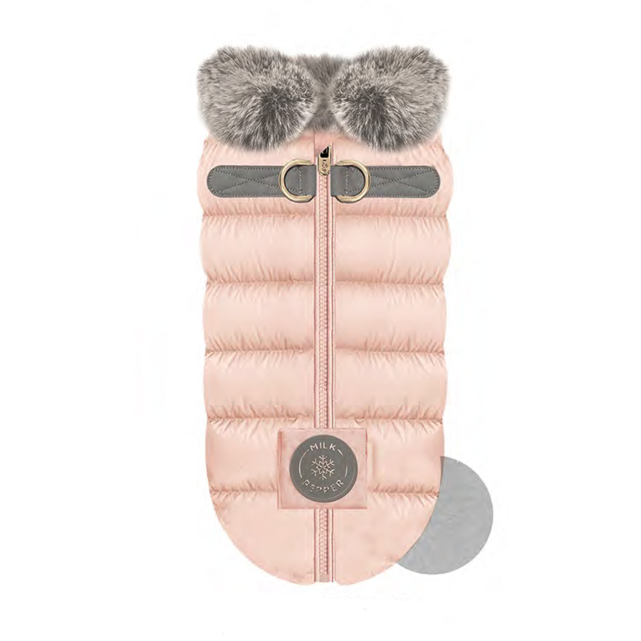Puff Jacket s postrojom z ružového prešívaného polyesteru (vodoodpudivá) vytvorená špeciálne pre malých a stredných psov