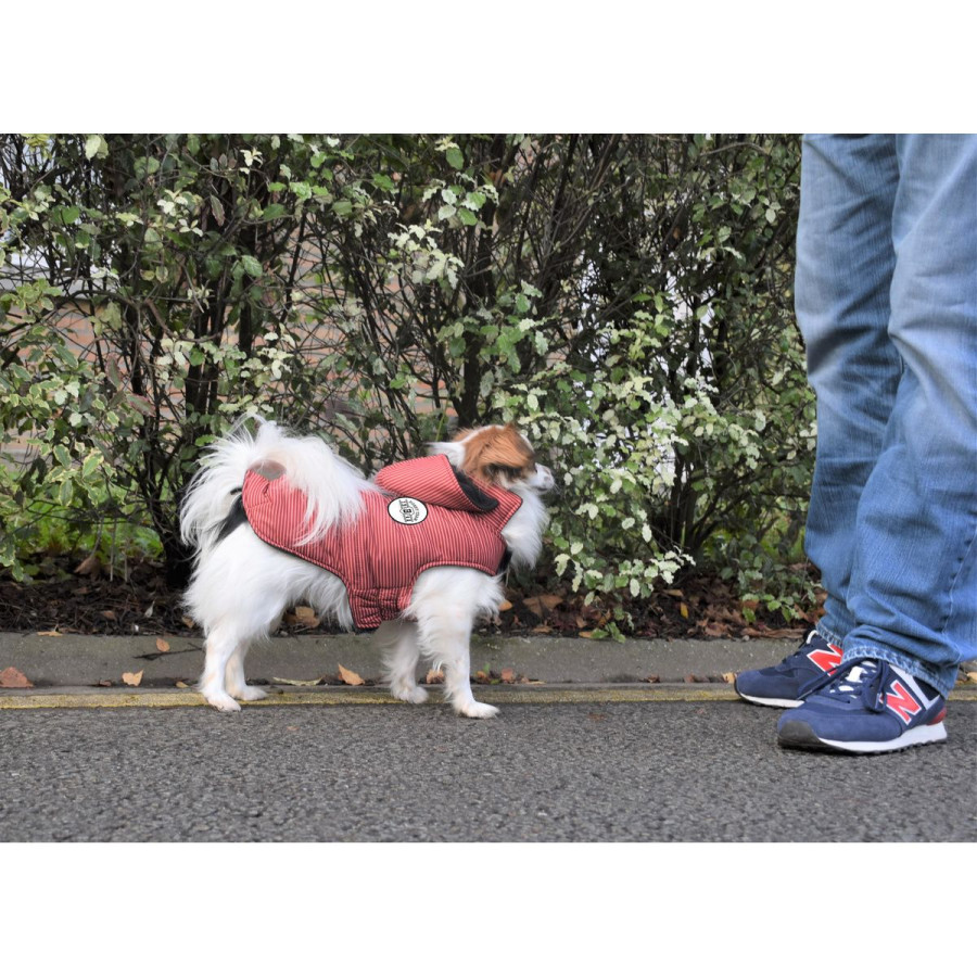 Pohodlná pruhovaná páperová bunda s odnímateľnou kapucňou. Flísová vnútroba vás udrží v teple a kabát je zvonku nepremokavý.