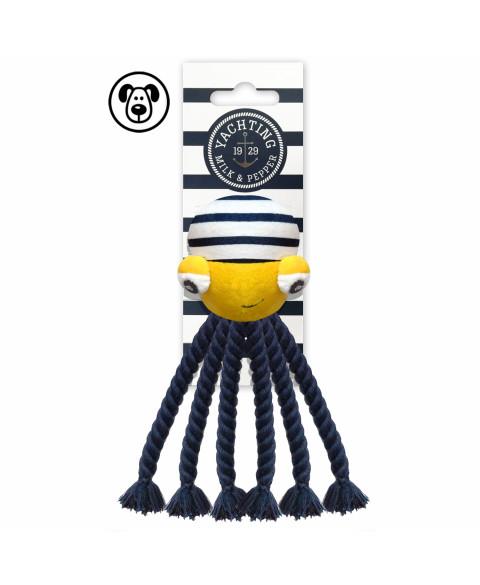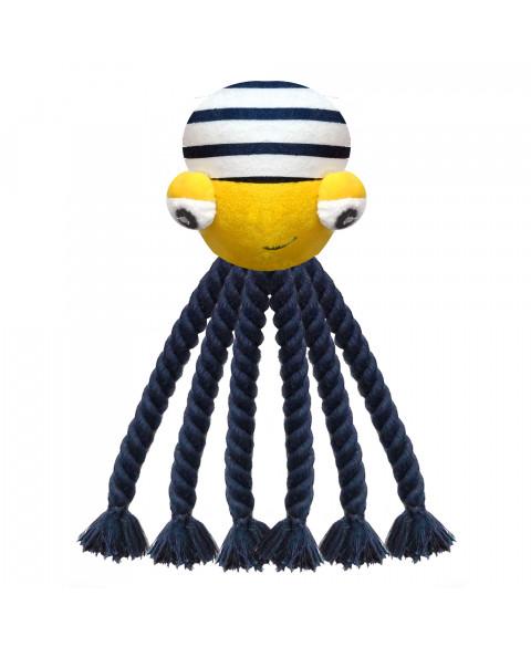 Mäkká plyšová hračka ChobotnicaNohy z námorníckej modrej bavlnenej šnúryVnútri pískadloVeľkosť: 22 cm