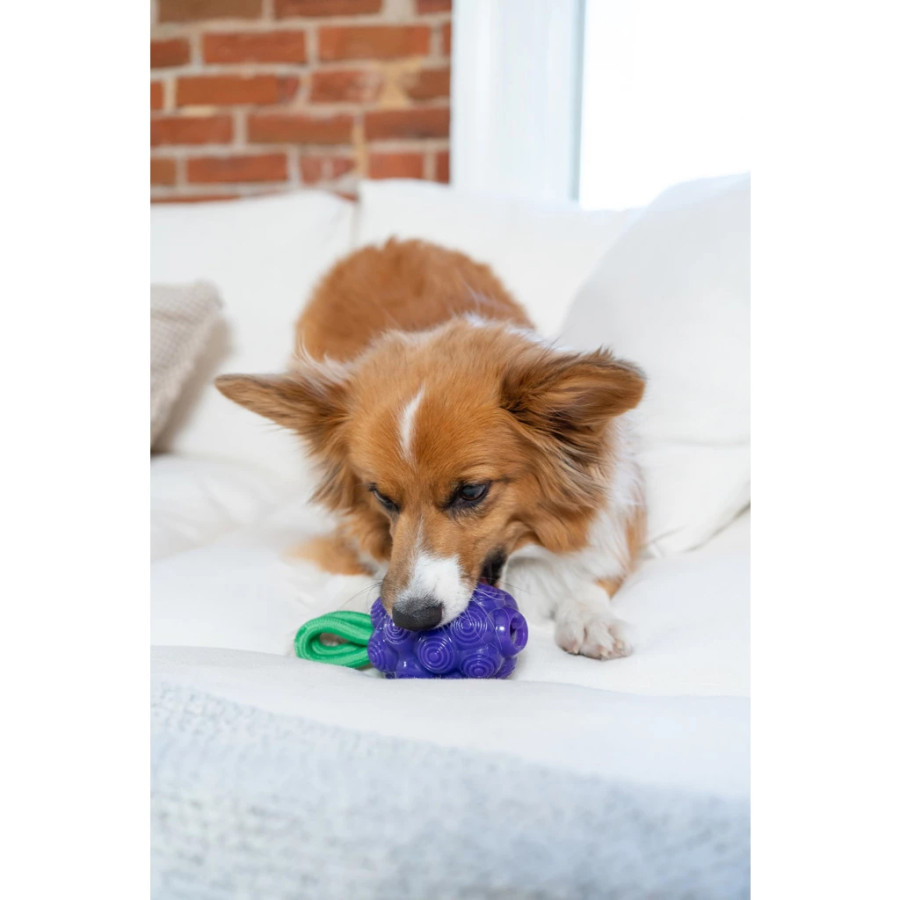 Dentálna hračka Outward Hound 2 v 1 poskytuje interaktívnu zábavu a zároveň pomáha čistiť zuby! Naplňte hračku maškrtami, aby ste ich povzbudili k žuvaniu. Strategicky umiestnené drážky a výstupky a integrované lano pomáhajú čistiť zuby počas žuvania, zatiaľ čo ovocná vôňa prispieva k sviežemu dychu. Pevné, ale zároveň šetrné materiály zabezpečujú dlhú životnosť hračky a sú šetrné k zubom. Ideálne pre psy, ktoré sa rady hrajú samy, a tiež ideálne na aportovanie a preťahovanie.