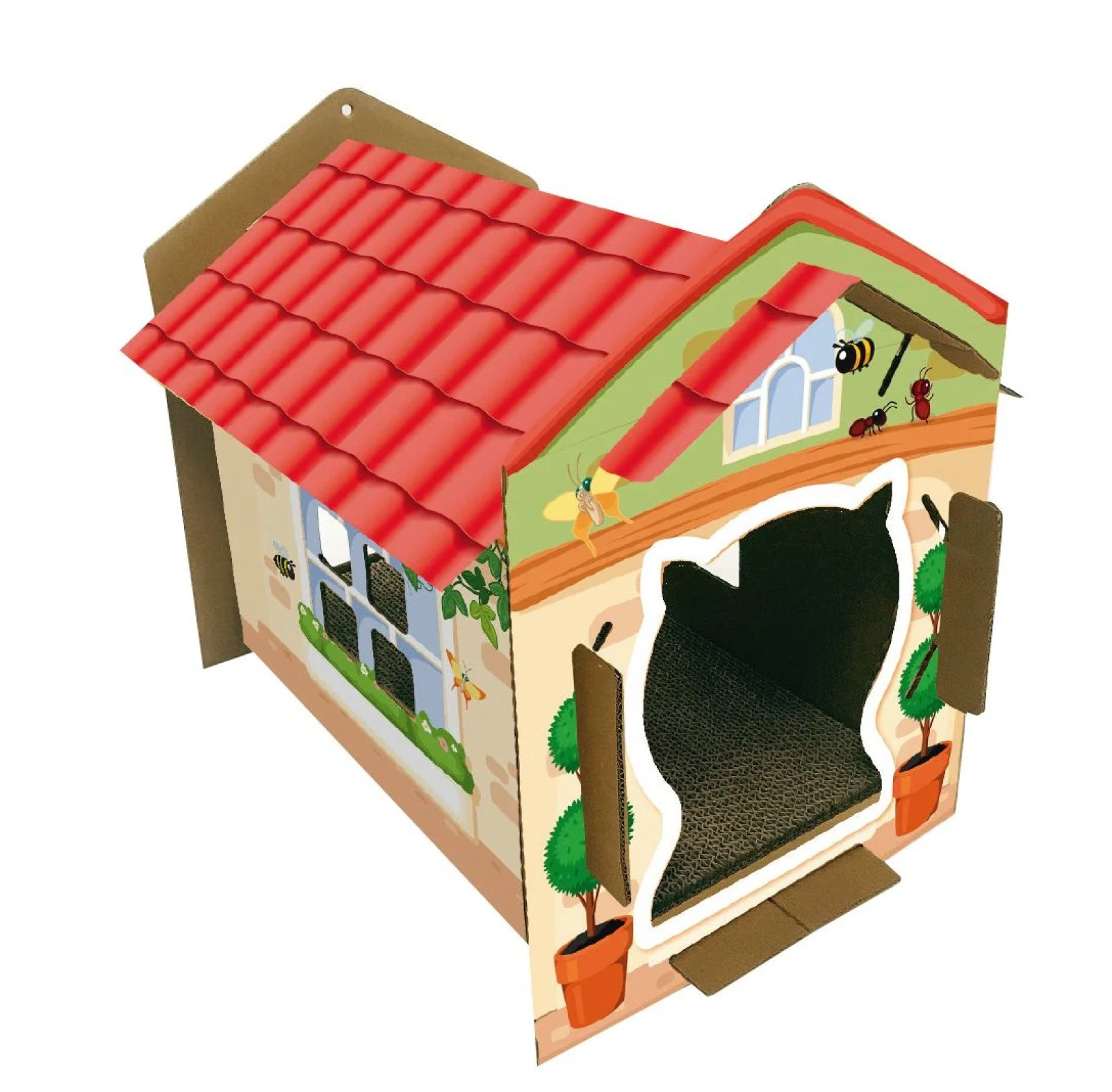 Škrabadlo pre mačky z kartónu Villa Color je vo vnútri vybavené škrabateľnými vložkami z vlnitej lepenky. Lepenka je materiál, ktorý mačky obzvlášť milujú, pretože je vhodný na uspokojenie ich prirodzeného inštinktu hrabania si v pazúroch a škrabania si ich. Jednoduchá montáž.