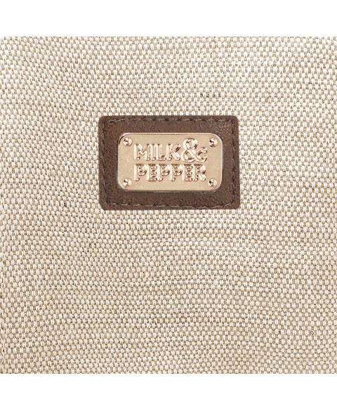 Klobúk z vresového pletenia (ľanová vrstva) Celá podšívka s taupe interlockovým prešívaním Hnedý golier z umelej kože Hnedá elastická manžeta na zápästí a zlatá kovová zarážka Hnedé sedlo z umelej kože s malou zlatou kovovou známkou „Milk&Pepper“
