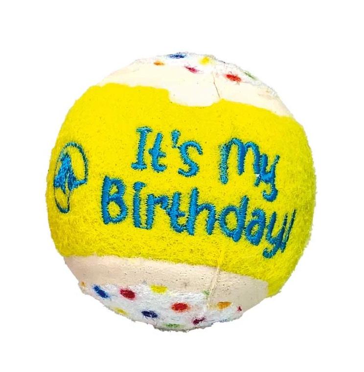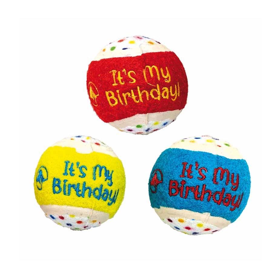 V strede má každá loptička farebný pás s nápisom "It's my Birthday" v rôznych farbách.
