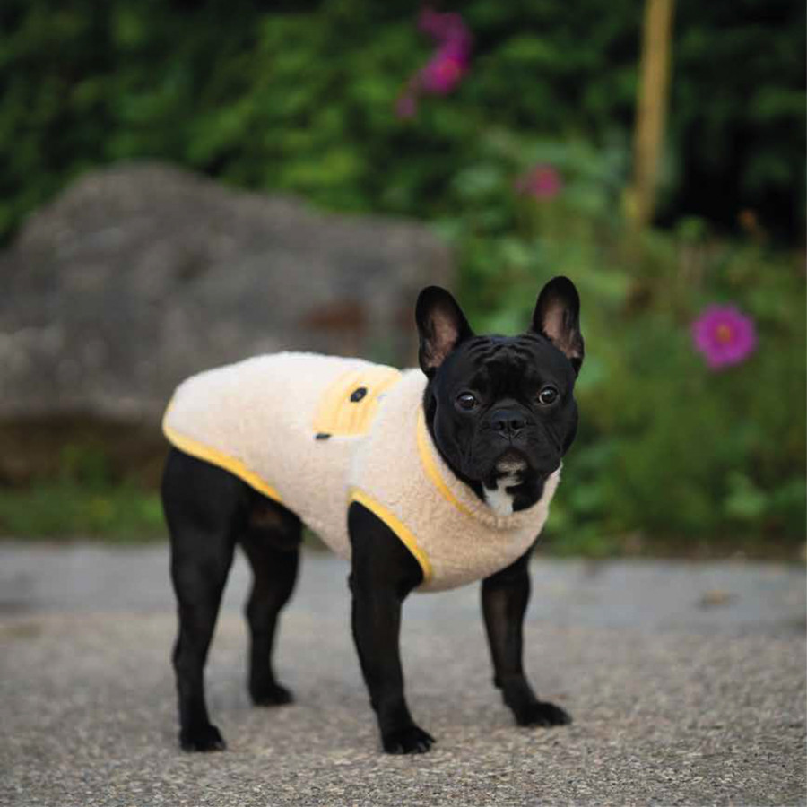Hrubá kožušinková mikina so zipsom na chrbte, vreckom na GPS alebo hygienické vrecká, s pútkami na upnutie vôdzky.