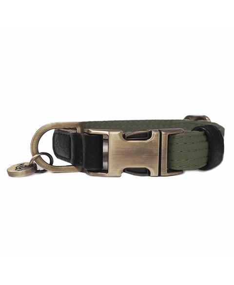 Prešívaný gabardénový béžový alebo khaki nastaviteľný obojok s čiernou vintage koženou úpravou