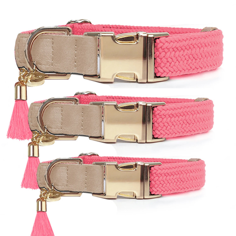 Nastaviteľný obojok zo spleteného vlákna s povrchovou úpravou v štýle vintage kože Kovové spony (spona/D-krúžok) Gravírovaná kovová medaila „M&P“.