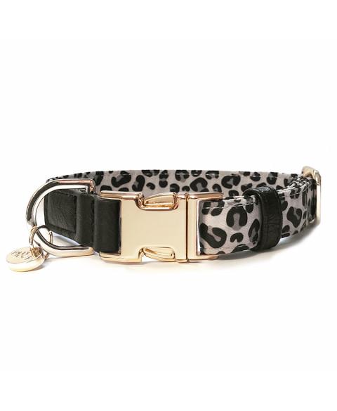 Nastaviteľné obojky s potlačou leoparda v šedohnedej farbe (exkluzívna potlač) a imitáciou čiernej kože