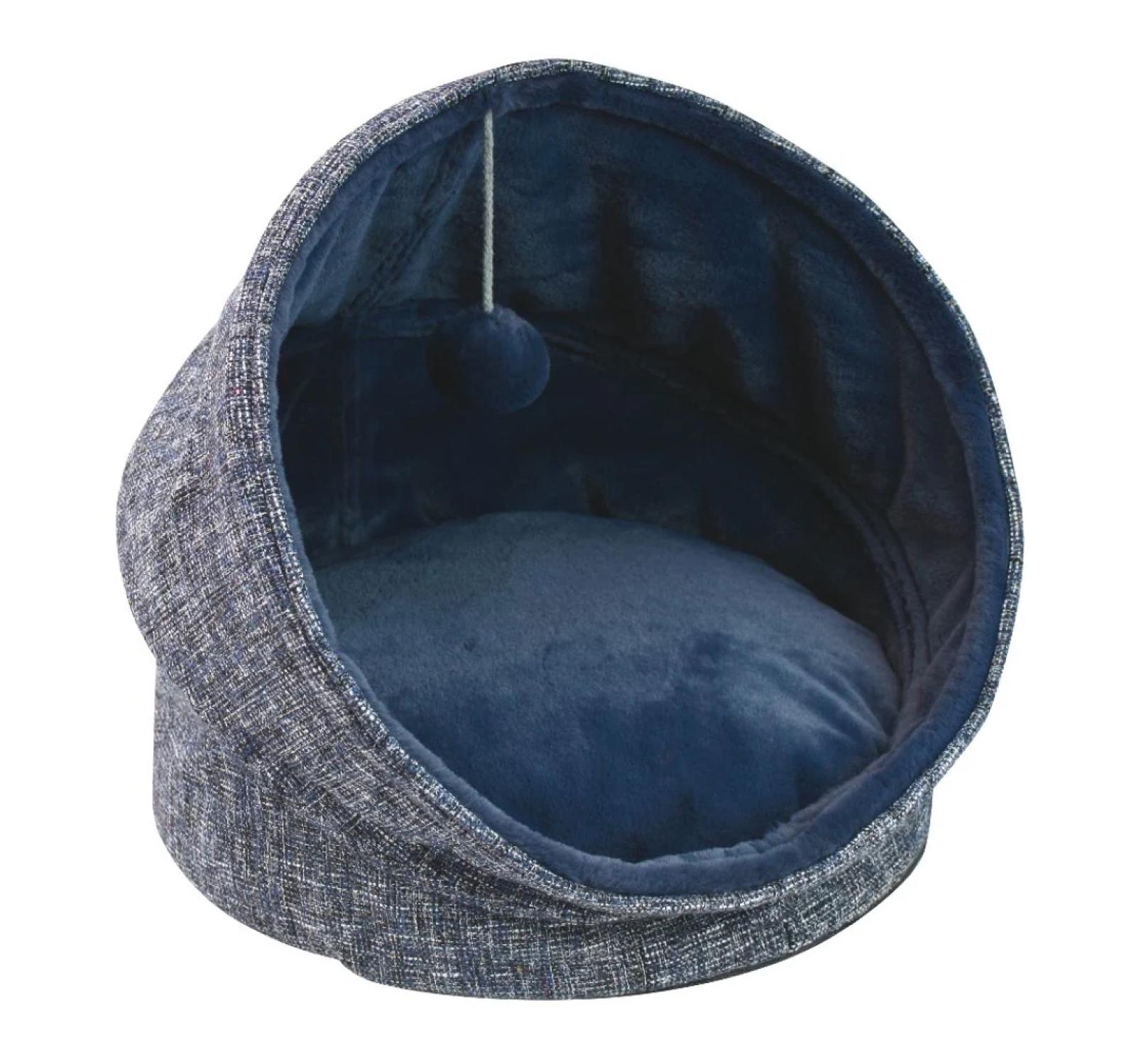 Vďaka špeciálnemu tvaru je vhodný najmä pre mačky, ktoré radi odpočívajú na odľahlom mieste a hľadajú ochranu pri relaxácii. Loptička visiaca z hornej časti zabaví vášho mačacieho kamaráta.