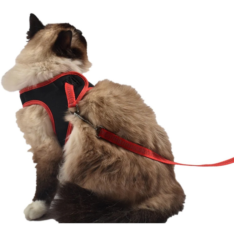 Vestový postroj pre mačku s vôdzkou vo farbe.