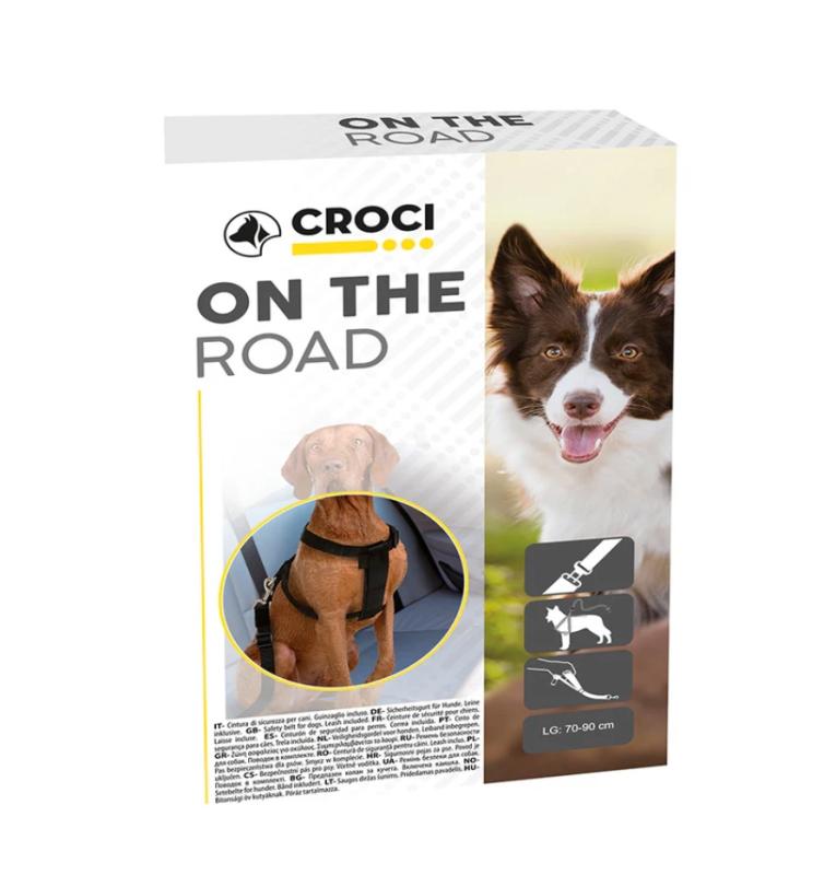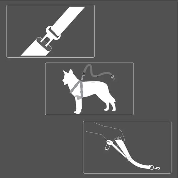 Postroj do auta je vybavený nastaviteľným popruhom s uchytením bežného bezpečnostného pásu a má aj karabínu na pripevnenie na akékoľvek vodítko, ktoré možno využiť aj na jednoduché prechádzky.