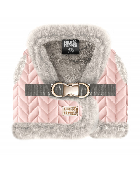 Malý zlatý odznak "Milk&Pepper" v hornej časti chrbta