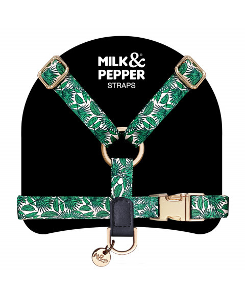 Nastaviteľné popruhy v zelenej tropickej potlači (exkluzívna potlač) a vintage námorníckej umelej koži