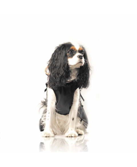 Otvor na zadnej strane umožňuje jednoduché prevlečenie akéhokoľvek vodítka cez bundu k postroju alebo krúžku na obojku