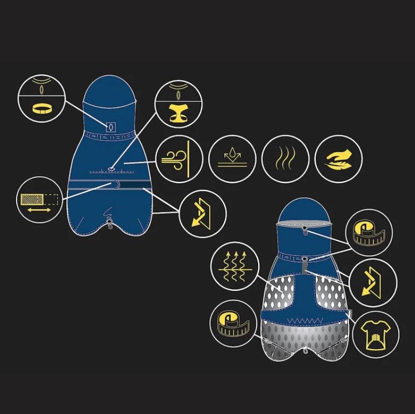Hiking City je pršiplášť pre psov odolný voči dažďu a vetru vyrobený z ľahkej, príjemnej na dotyk a nastaviteľnej látky. Oblečenie bolo navrhnuté tak, aby sa dokonale prispôsobilo pohybom zvieraťa bez toho, aby ho obťažovalo.