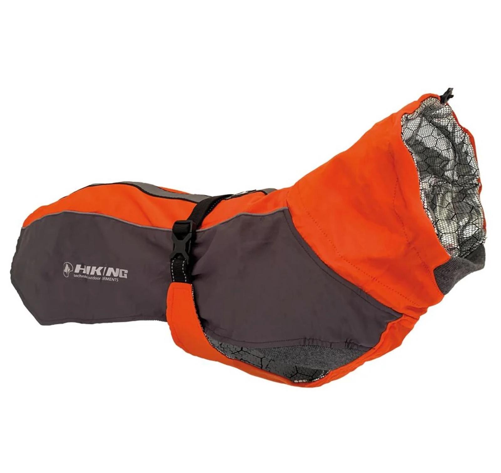 Vetruvzdorný a dažďuvzdorný pršiplášť pre psa vybavený termoregulačnou podšívkou na ochranu vášho domáceho maznáčika pred teplotami rovnými alebo vyššími ako 5 °C.