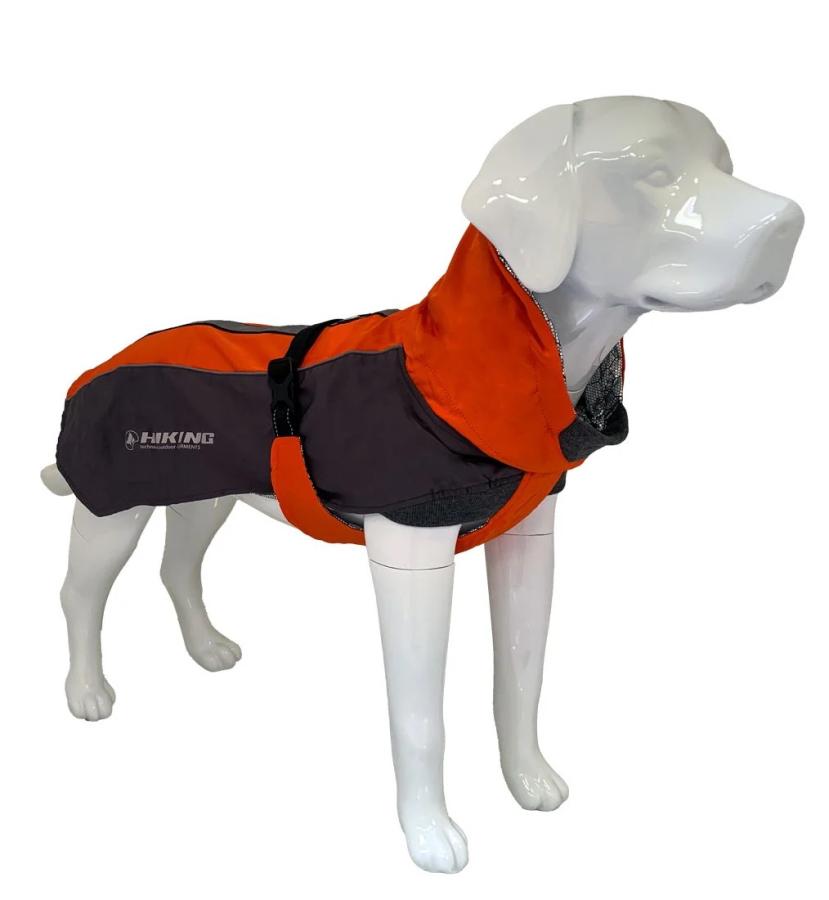 Vetruvzdorný a dažďuvzdorný pršiplášť pre psa vybavený termoregulačnou podšívkou na ochranu vášho domáceho maznáčika pred teplotami rovnými alebo vyššími ako 5 °C.