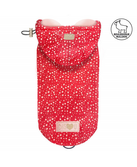 Nepremokavý červený materiál s exkluzívnou potlačou „malé srdiečka“ v púdrovej farbe