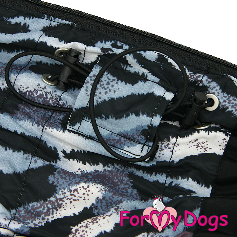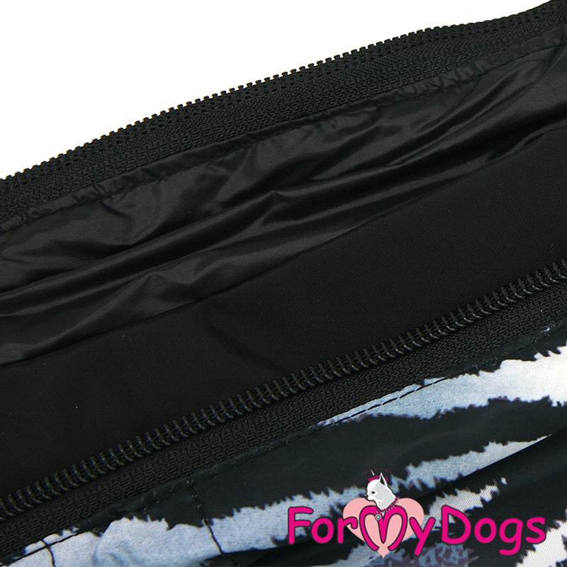 Pršiplášť vyrobený z vodeodolného polyesteru, so zipsom na chrbte. Krk je zapínaný dvoma gombíkmi. Dvojitý náprsník je nastaviteľný okolo tela psa, a prebytočná gumička je uzavretá vo vrecku. Manžety s gumičkou na rukávoch pre priliehavé priľnutie k labke. Reflexné prvky: lemovanie na rukávoch a prúžok na krku. Použitie: Pre všetky stredné a veľké plemená 100% polyester Starostlivosť: Jemné pranie v práčke pri 30°C na ľavej strane, bez namáčania. Po vypraní nežmýkať. Upozornenie: Nesušiť v blízkosti zdrojov tepla v miestnosti (batérie, radiátory). Zmena potlače počas používania nie je chybou.