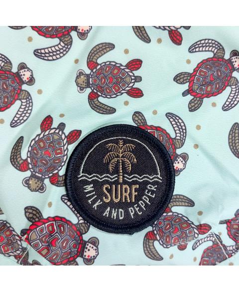 Vodeodolný zelený materiál s viacfarebnou exkluzívnou potlačou „korytnačky“.