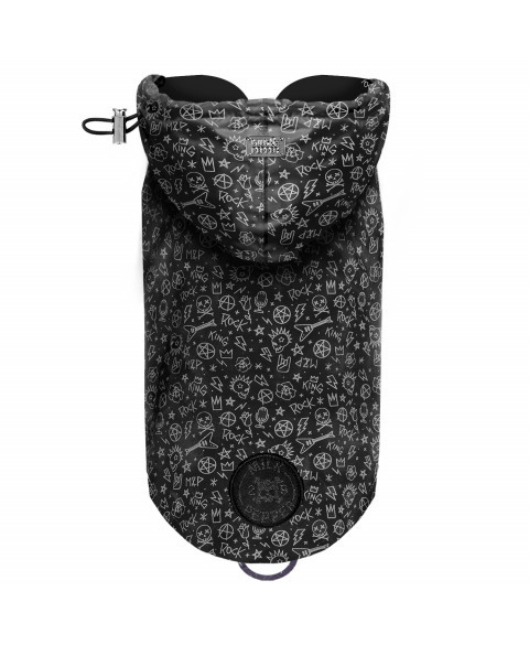 Čierny vodeodolný materiál s rock&roll vzormi v svetlosivej farbe, exkluzívna potlač