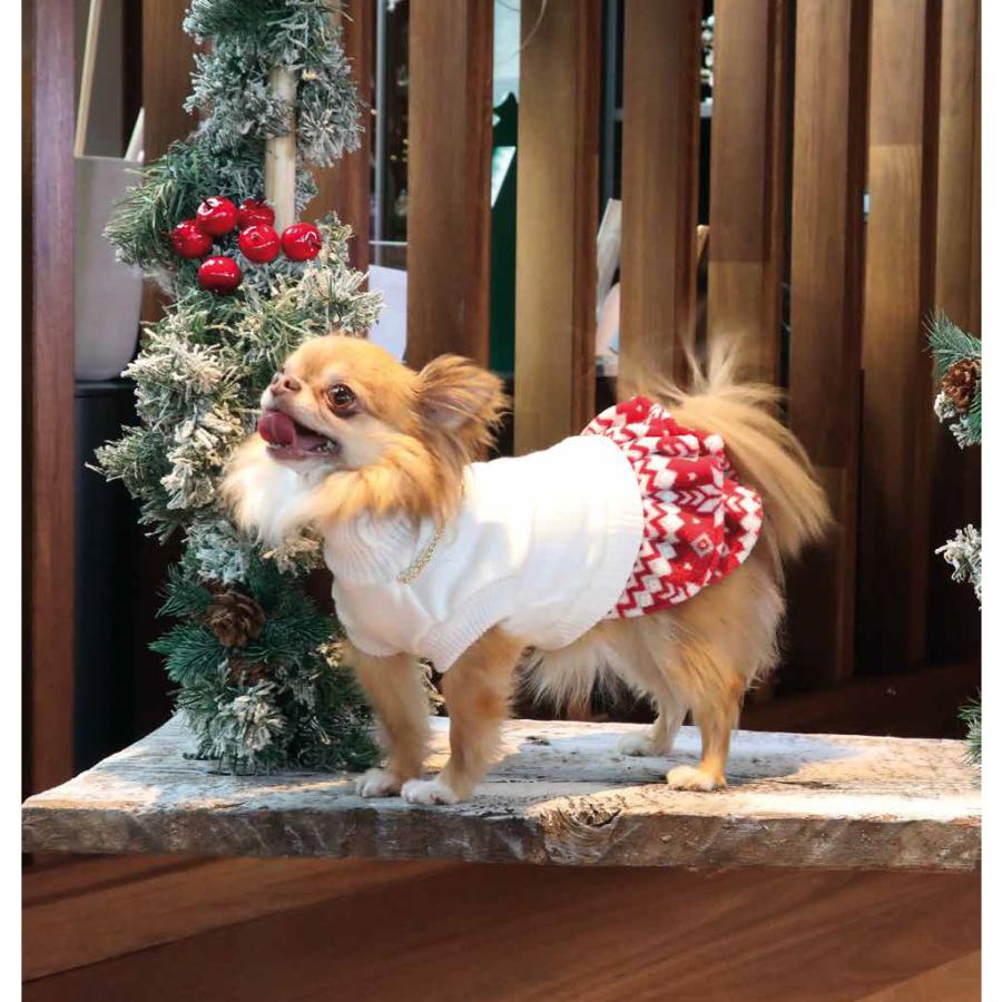 Vianočné šaty pre fenky, kombinácia vrchného teplého svetríka a sukničky z mäkučkého plyšu.