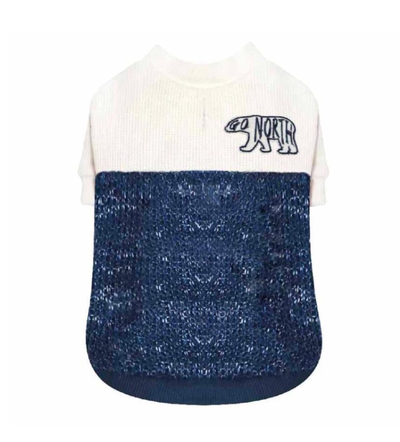 Go North je vyrobený z dvojitého úpletu, ktorý umožňuje, aby bolo oblečenie teplé a pohodlné. Tento psí sveter je ideálny na nosenie počas chladnejšieho obdobia a je dostupný v ružovej a modrej farbe.
