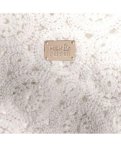 Bočné vrecko s kovovou plaketou „Milk&Pepper“ v zlatej farbe