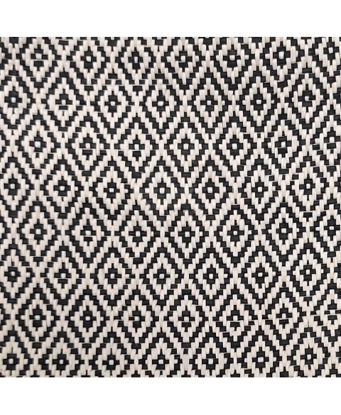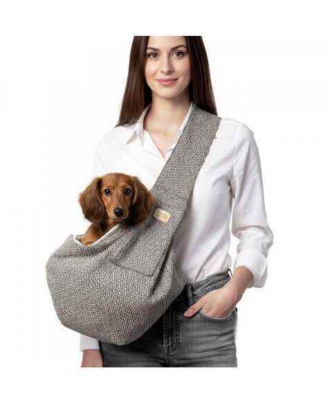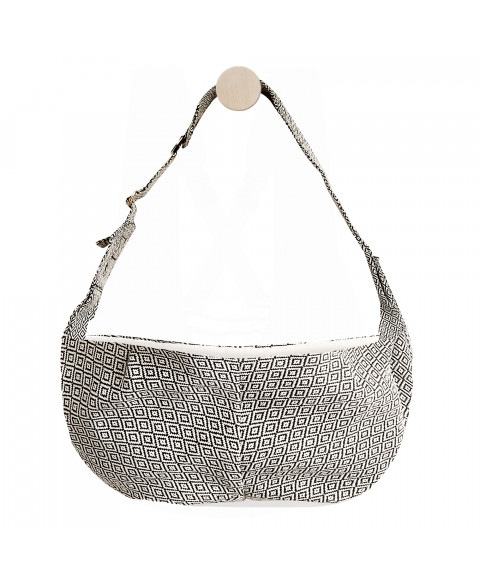 Taška cez rameno s nastaviteľným popruhom v čiernej alebo béžovo-bielej farbe s geometrickým vzorom Biela podšívka z inertlocku Bočné vrecko so zlatou kovovou plaketou „Milk & Pepper“ Malé lanové vodítko so zlatou sponou