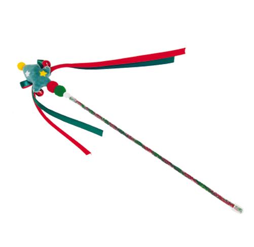 Podmanivá sviatočná udica pre mačku s trblietavým červeným pozlátkovým prútikom, luxusným červeným pierkovým "motúzikom" a postavičkou tučniaka.