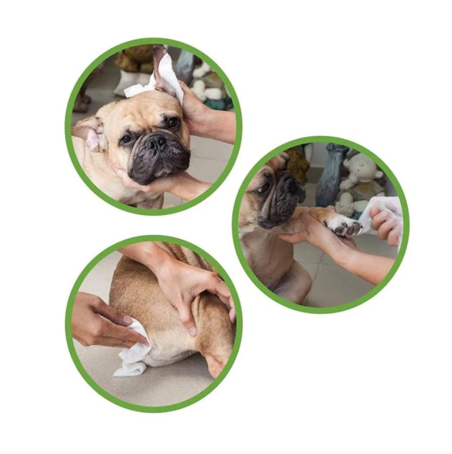 Špecifický materiál týchto vlhčených obrúskov pre psov je embosovaný, aby sa zabezpečilo úplnejšie čistenie.