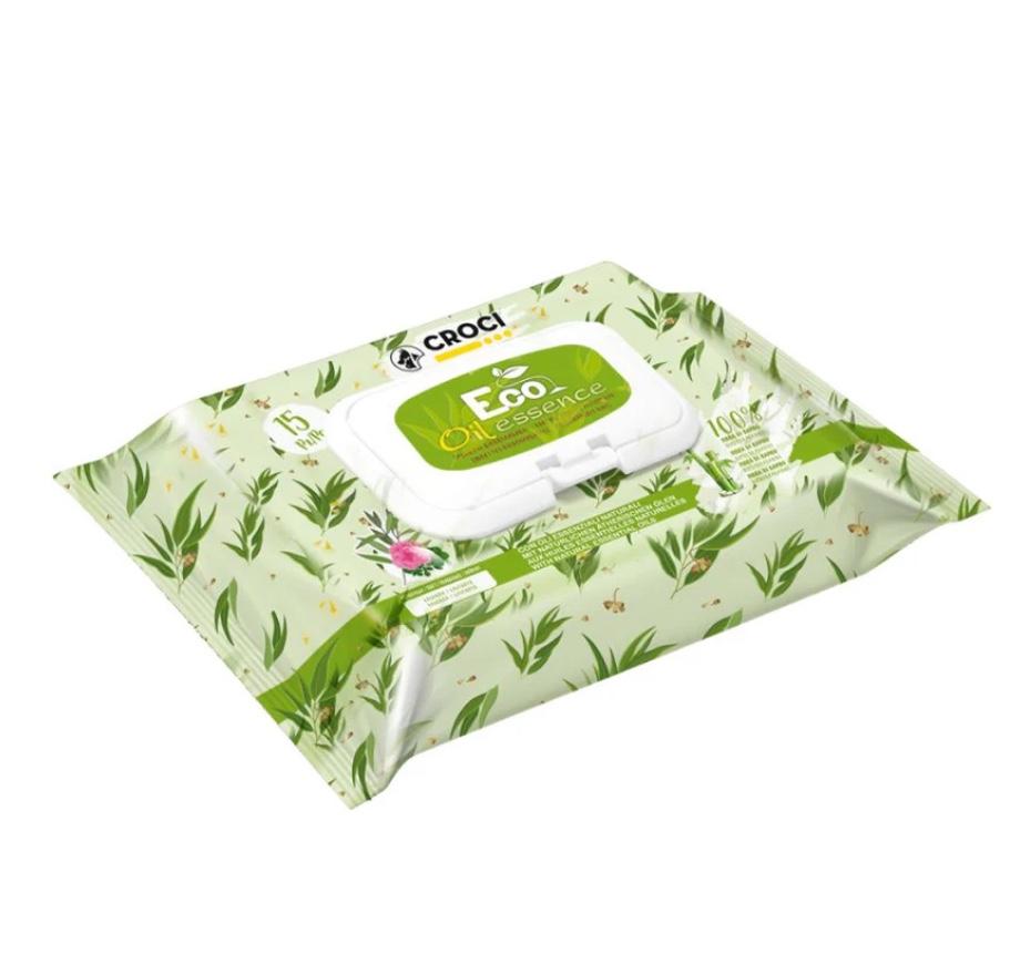 Vlhčené obrúsky pre psov a mačky Oil-Essence sú úplne biologicky odbúrateľné, pretože sú vyrobené zo 100% čistého bambusu.