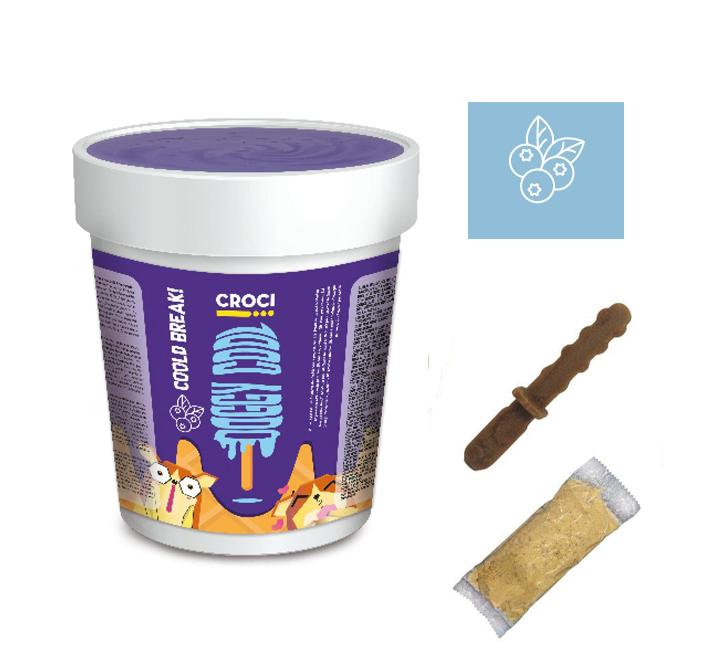 Lahodný a osviežujúci nápad pre psa! Urob si sám nanuky: jednoducho rozmiešajte obsah každého vrecúška v 20 ml vody, vložte do príslušných formičiek s tyčinkami (jedlé) a zmrazte aspoň na 4 hodiny. Príchuť čučoriedka, 156 g