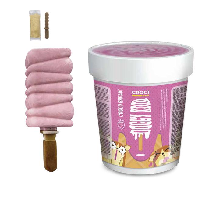Lahodný a osviežujúci nápad pre psa! Urob si sám nanuky: jednoducho rozmiešajte obsah každého vrecúška v 20 ml vody, vložte do príslušných formičiek s tyčinkami (jedlé) a zmrazte aspoň na 4 hodiny. Príchuť jahoda, 156 g